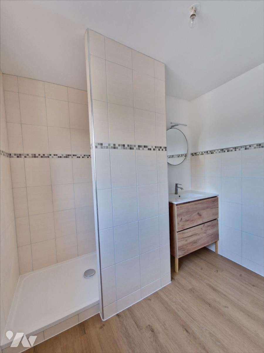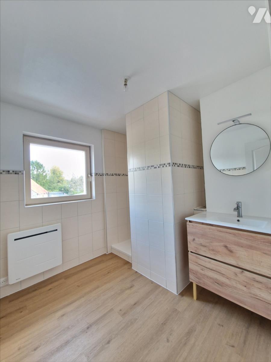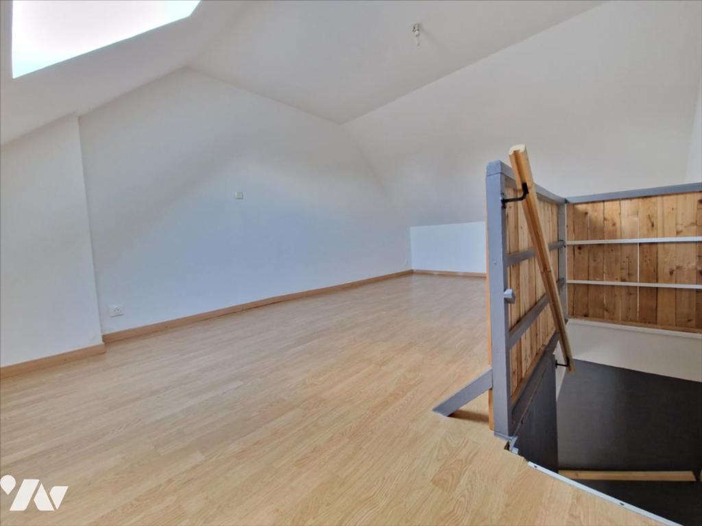 RDC: salon/séjour (28,3 m²), cuisine équipée (6,7 m²), buanderie (2,6 m²).Étage1: plancher bois.Palier (4 m²), SD'E (5,5 m²), WC (2,5 m²), 1 chambre (11,6 m²).Étage 2: 1 chambre (10,4 m²).